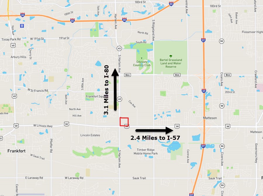 | Lot Frontage (Feet): | 1265 feet of frontage on Harlem Ave. 1240 feet of frontage on Rt. 30. |