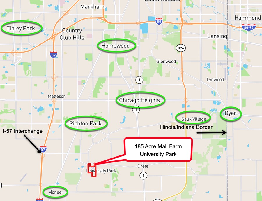 | Highway Access: | I-57 is 3.3 miles to the west of the property. I-57 is a direct route to Chicago and both airports. Champaign, IL is south on I 57. | |