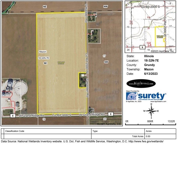 | Location Description: | The property is located about 2 miles directly west of Mazon, IL from IL Route 47, right off the corner of W Grand Ridge Road & S Hadden Road. | |